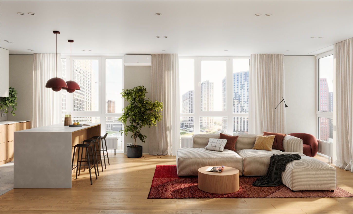 We create every interior image as a lifelike depiction of space concepts based on your requirements with our passion and professionalism. We believe that any space is unique, so we want to tell its story excitingly and capture the special features of each of them, that's how the captivating image is born. Stunning image evoking emotions tells more than any words, so let the impressive images with photorealistic quality represent your project in the best light. An artistic approach and accuracy in the finest details define qualitative visualization. That's why we pay attention to every aspect of image's crafting: Room Layout The overall design and precision in the arrangement of furniture, walls, and other features to represent the interior space. Materials & Textures Accurate representation of surface materials such as wood, metal, stone, fabric, etc., to make surfaces feel natural. Lighting A critical creative aspect, as proper lighting (natural or artificial) sets the desired tone and mood for the space. Furniture & Decor Only high-quality 3D models of furniture, plants, artwork, and other decor items are used to make the space feel lived-in and customized. Camera Angles Different viewpoints can be demonstrated to give a desired perception and comprehensive understanding of the space.